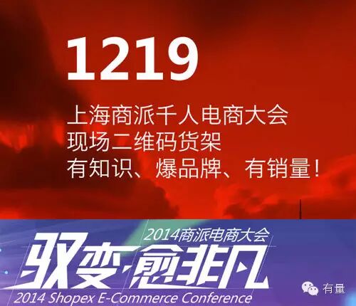 1219商派将举行千人电商大会,届时在现场,二维码货架+现场开店+1分钱体验购等,将全面展现有量·微店服务的风采。